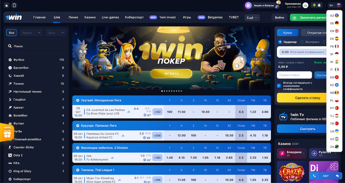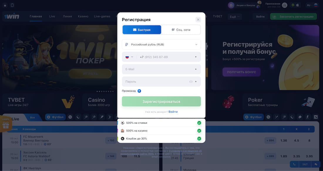 Чтобы зарегистрироваться, просто зайдите на официальный сайт 1 вин. Если основной ресурс временно недоступен, воспользуйтесь зеркалом. Также вы можете создать аккаунт через мобильное приложение, что особенно удобно для игры со смартфона в любое время. Процесс создания аккаунта максимально упрощен: выберите подходящий способ (по email, телефону или через социальные сети), укажите необходимые данные и создайте профиль.